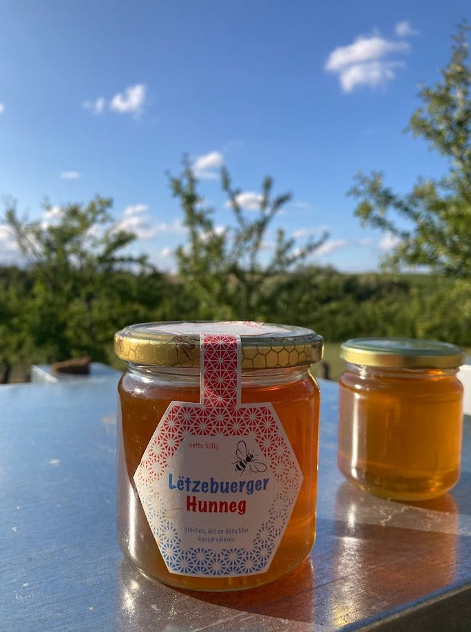 Appréciez les saveurs uniques de notre miel biologique en provenance du Luxembourg. Savourez notre miel bio, doux et avec des saveurs riches. Récolté à Remich, au sud de Luxembourg, avec soin pour préserver la qualité et la pureté.Découvrez les bienfaits de notre miel biologique luxembourgeois. Un trésor de la nature à déguster avec plaisir. Lëtzebuerger Hunneg: l'authenticité et la qualité d'un miel naturel.