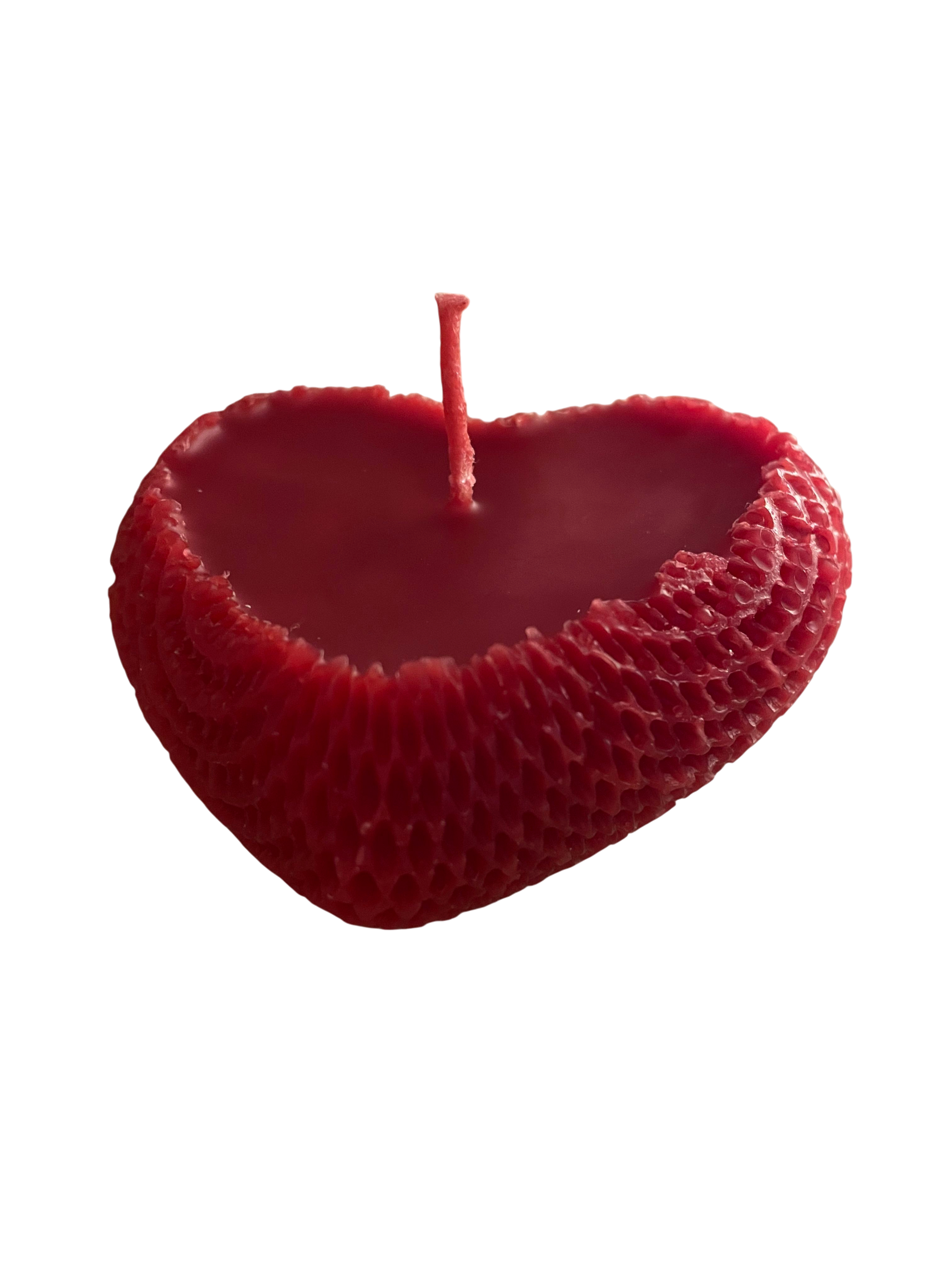 Bougie Cœur alvéolée – Cire d’Abeille Artisanale (Rouge Passion)