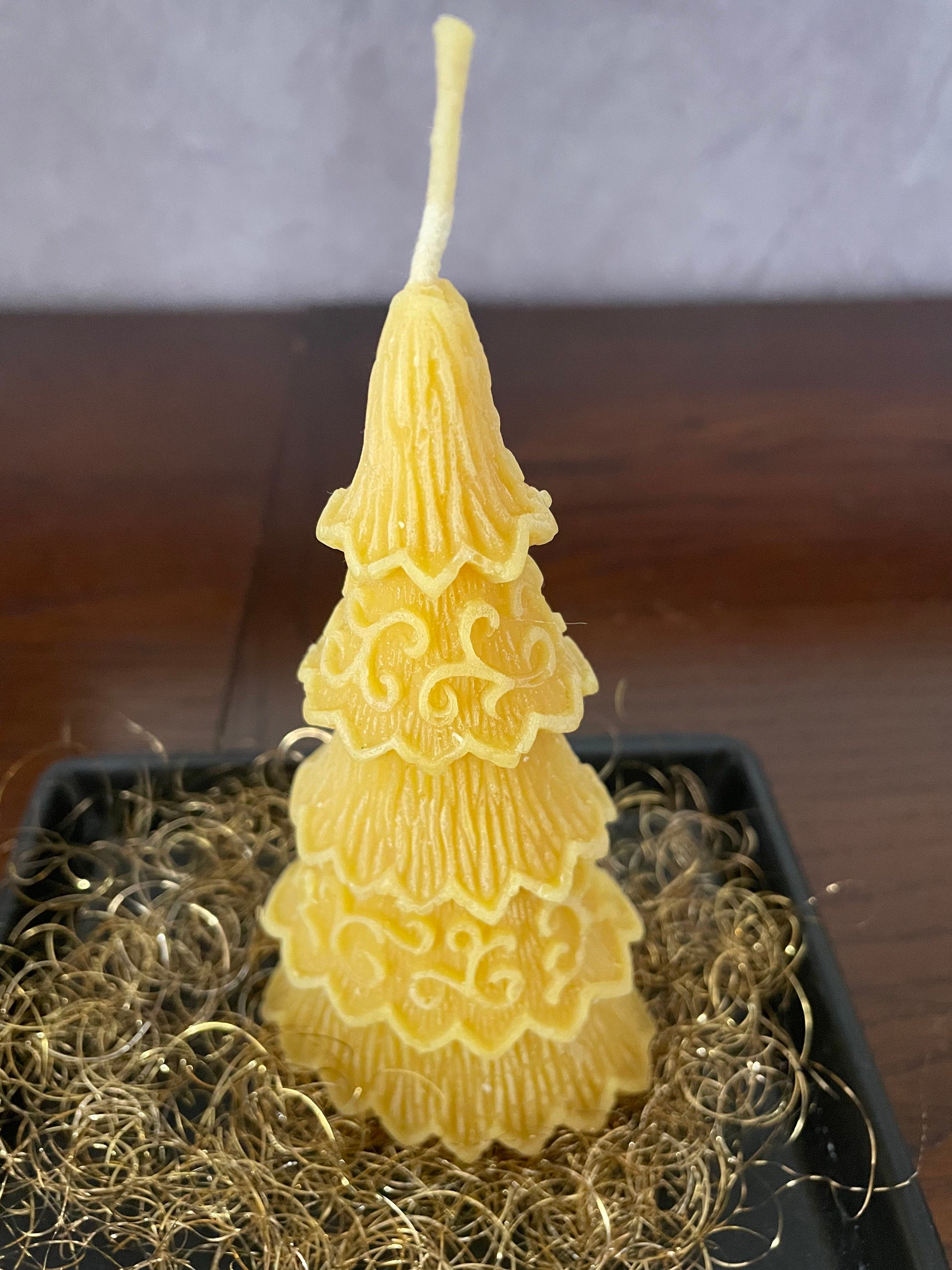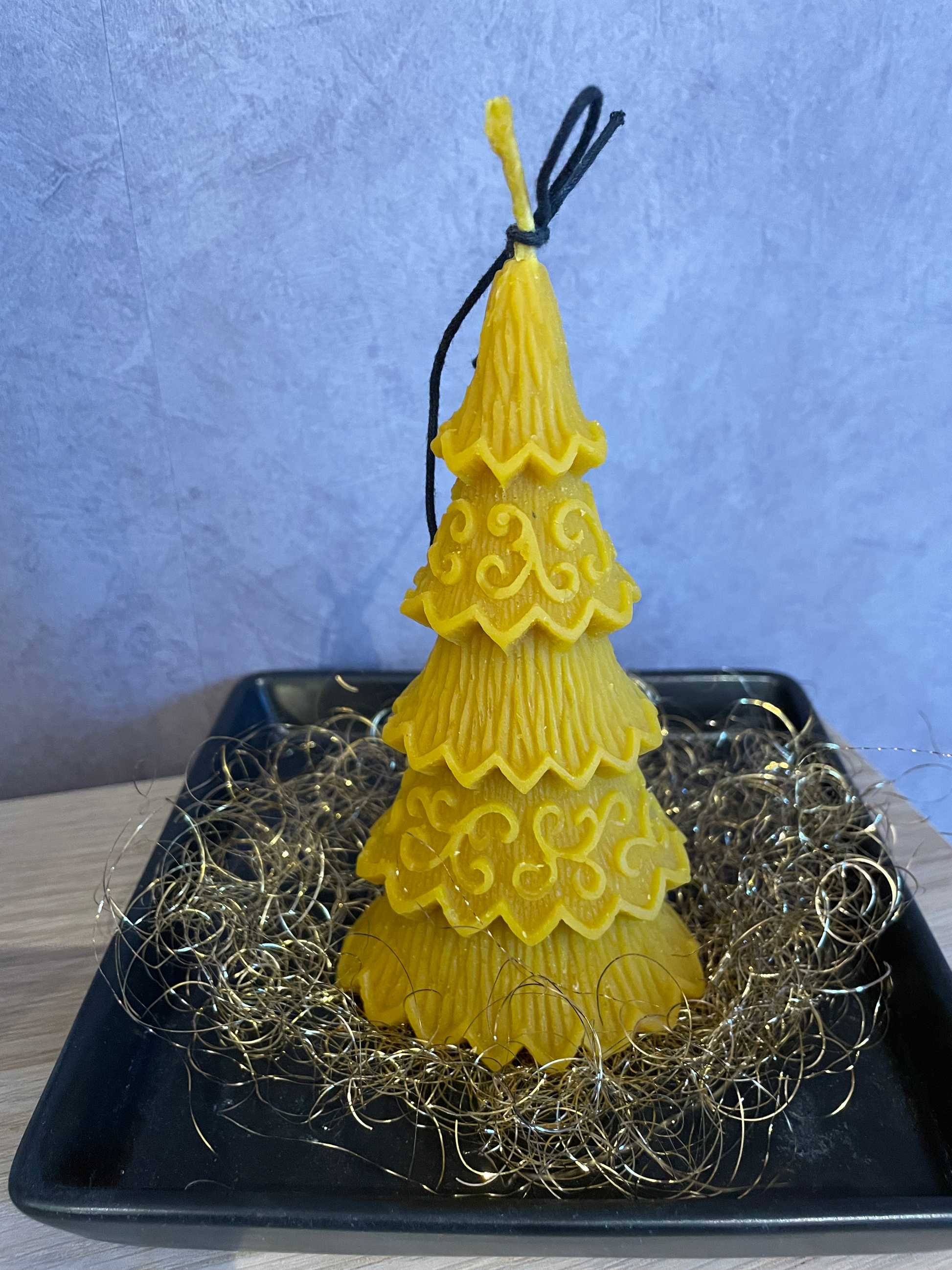 Fabriquée en France à partir de cire d'abeille 100% naturelle, cette bougie en forme de sapin est un cadeau émouvant et durable. Une merveille olfactive qui remplira votre intérieur de douceur et de chaleur !