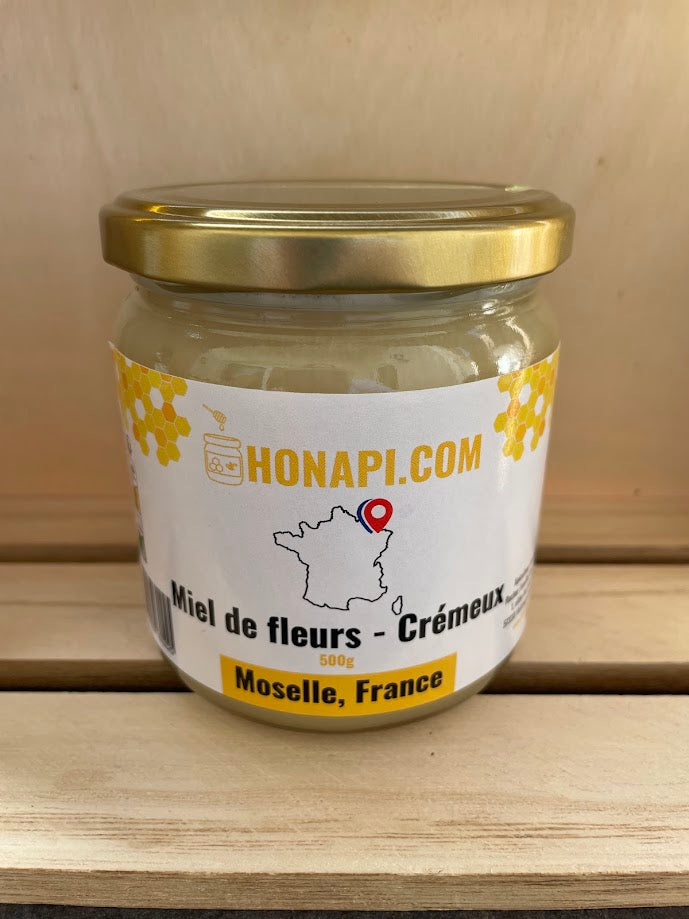 Le miel crémeux de Honapi est un miel de haute qualité récolté en Moselle (Elange, Ottange, Hettange-Grande) en France par la famille Vigneron, apiculteurs passionés de pÚre en fils.